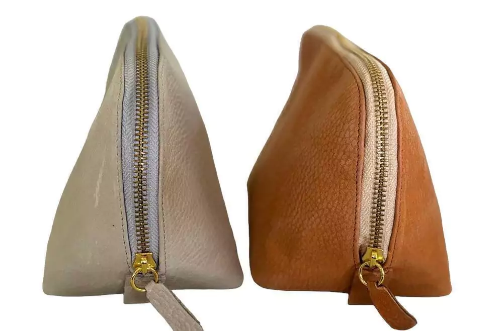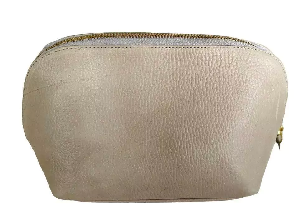 El necessaire esta confeccionado 100 % en cuero vacuno. Su interior esta forrado en tela gross. Tiene el tañamo ideal para guardar cosmeticos, perfumes para llevar en el interior de tu cartera.